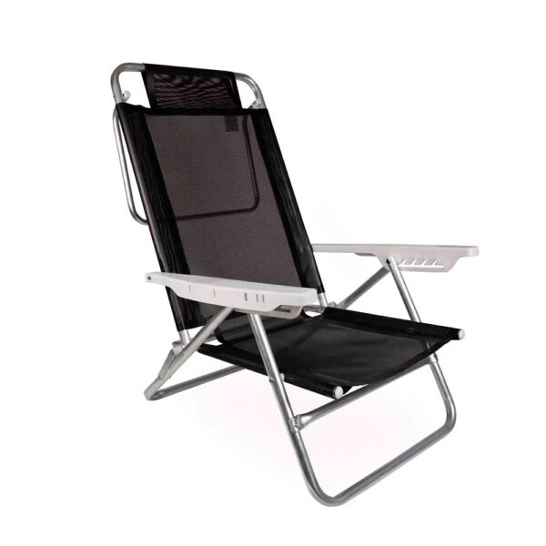 Referência: 47425Praticidade em qualquer lugar! Anatômica, vai permitir que você aproveite todos os prazeres do sol, pois os tubos foram projetados de forma a não pressionar as articulações. Conta com estrutura em tubo de alumínio de excelente qualidade, braços em polipropileno e tela 100 % poliéster com revestimento em PVC. Leve e durável graças à sua estrutura de alumínio, suporta até 120 Kg e foi pensada para ambientes externos e áreas litorâneas, já que não enferruja. Possui seis diferentes configurações de ajustes de altura, apoio para braços e encosto alto, além de alça que serve de apoio quando utilizada na posição horizontal, proporcionando mais estabilidade. É compacta e pode ser fechada quando for guardada, ocupando pouco espaço. Cor Preta