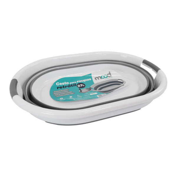 Referência: 56540O Cesto para Roupas Retrátil da marca Mood é um item de organização doméstica projetado para ajudar a manter as roupas sujas organizadas e separadas até a hora da lavagem. - Generosa capacidade de 37 litros para acomodar uma quantidade significativa de roupas. - Design retrátil que economiza espaço quando não está em uso. - Combinação de cores neutras de branco e cinza que se encaixam perfeitamente em qualquer ambiente. - Alças para transporte conveniente. O design retrátil permite que você dobre o cesto quando não estiver em uso, economizando espaço valioso. As cores neutras de branco e cinza se adaptam harmoniosamente a qualquer decoração, enquanto as alças tornam o transporte conveniente.