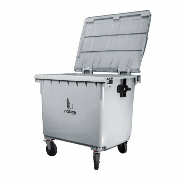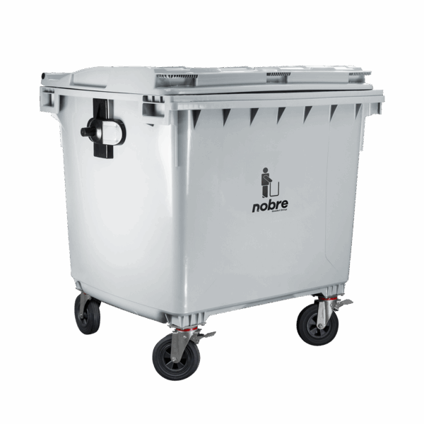 Coletora plastica 1100l. (s/ pedal, c/ rodas e engate p/ coleta mecanizada) cinza - Nobre