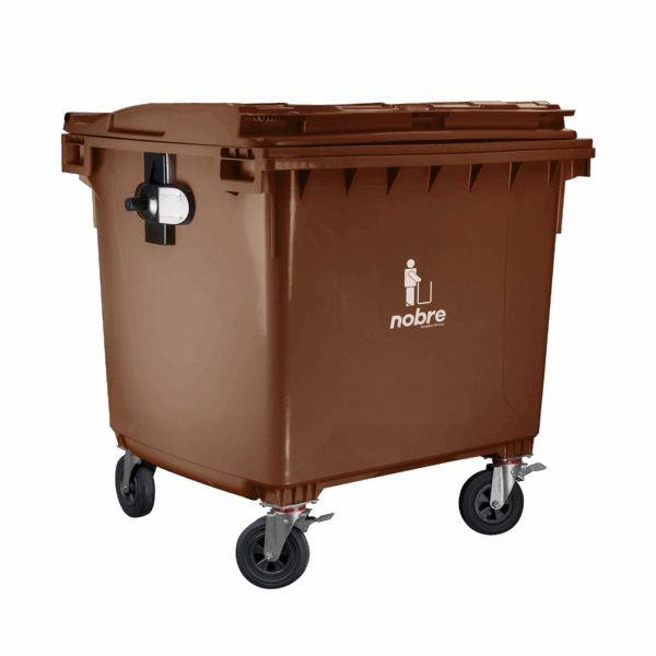 Coletora plastica 1100l. (s/ pedal, c/ rodas e engate p/ coleta mecanizada) marrom - Nobre