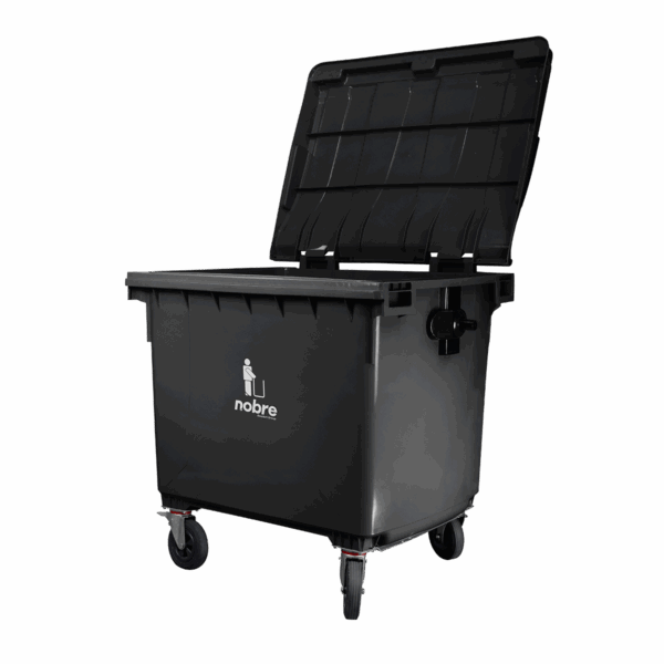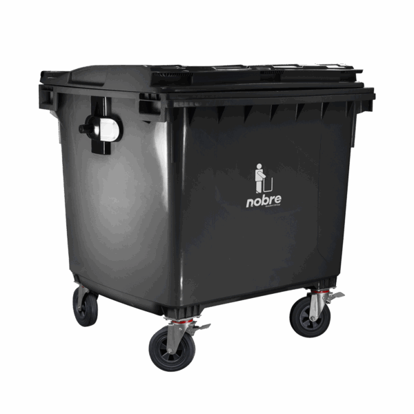 Coletora plastica 1100l. (s/ pedal, c/ rodas e engate p/ coleta mecanizada) preto - Nobre