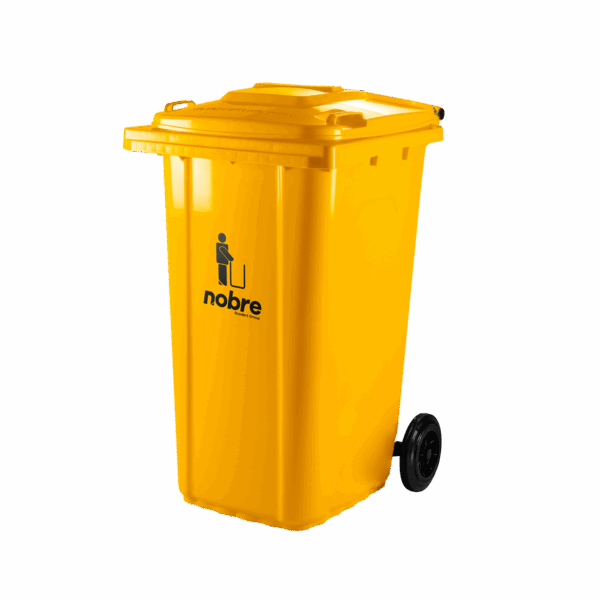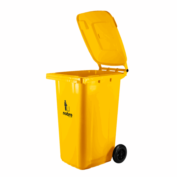 Referência: 55479Coletora para lixo e resíduos Nobre Modelo europeu Com rodas para melhor locomoção Com plástico de alta densidade Para uso comercial ou residencial Capacidade de carga de até 96Kg Com volume de 240L Cor: Amarela