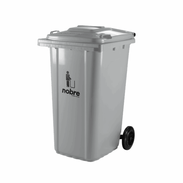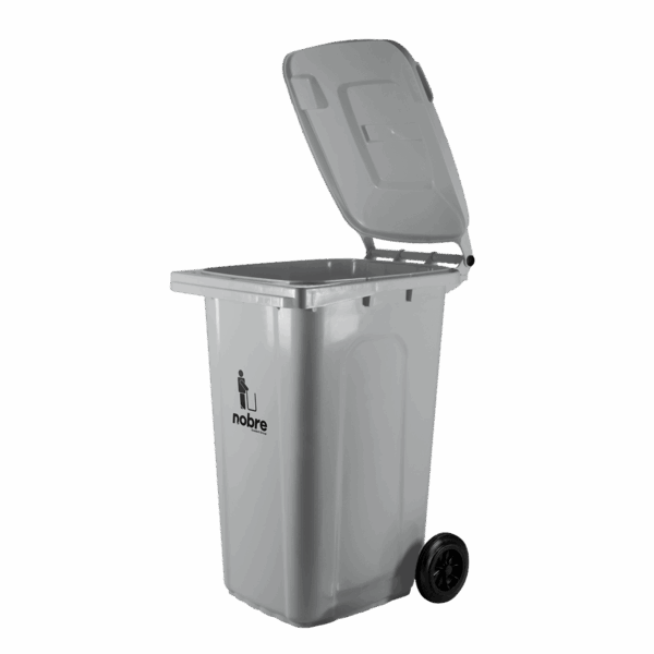 Referência: 39838Coletora para lixo e resíduos Nobre - Modelo europeu - Com rodas para melhor locomoção - Com plástico de alta densidade - Para uso comercial ou residencial - Capacidade de carga de até 96Kg - Com volume de 240L - Cor: Cinza