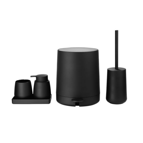 Referência: 61133Adicione elegância e simplicidade ao seu banheiro com o Conjunto Circle da Mood! Conjunto com 5 peças essenciais para organização e praticidade. Lixeira com pedal de 4 litros e cesto interno removível. Dispensador de sabonete com capacidade de 280ml. Porta-escova de dentes, escova sanitária com suporte e bandeja de apoio. Design moderno e funcional para um ambiente sofisticado. O Conjunto Circle da Mood oferece tudo que você precisa para manter seu banheiro organizado com estilo, combinando estética e funcionalidade para o dia a dia. Cor: Preto