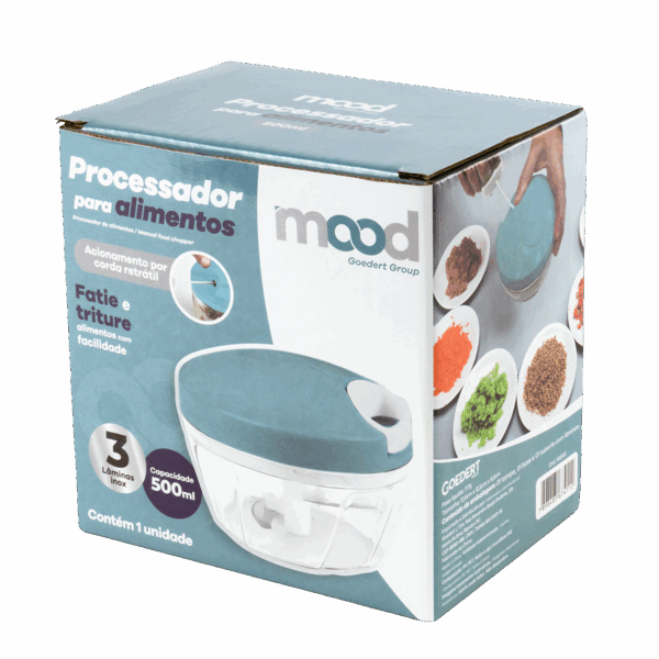 Referência: 56543Simplifique a preparação de alimentos com o Processador Manual da Mood! - Capacidade de 500ml. - Acionamento por corda retrátil. - Lâminas afiadas para cortar, picar e triturar com facilidade. - Fácil de montar, usar e limpar. - Ideal para preparar legumes, frutas, ervas e muito mais. O Processador Manual da Mood é a ferramenta perfeita para tornar o preparo de alimentos mais rápido e fácil. Sua operação manual não requer eletricidade, tornando-o conveniente para uso em qualquer lugar.