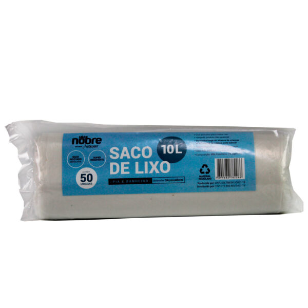Saco Plástico p/ Lixo - 10 litros - Branco - c/ 50unid. - Nobre
