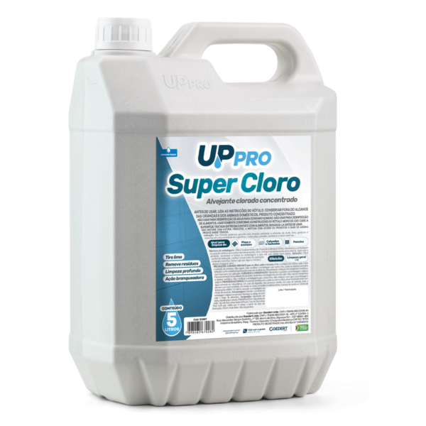 Referência: 53497Super Cloro é um produto concentrado com alto poder alvejante e desinfetante. Utilize Equipamentos de Proteção Individual (EPIs). Mantenha a embalagem na posição vertical para evitar derramamentos.