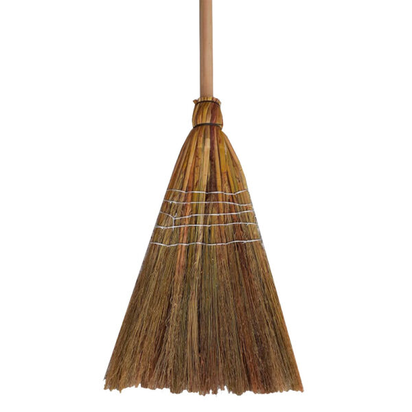Referência: 32029Também conhecida como vassoura GUINÉ, ou vassoura de palha. A palha plantada especialmente e exclusivamente para a fabricação da vassoura. É composta por palha, madeira de reflorestamento, arame e barbante reciclado. Medida cabo: 1 metro Vassoura (palha): 35cm aproximadamente Total: 1,35m